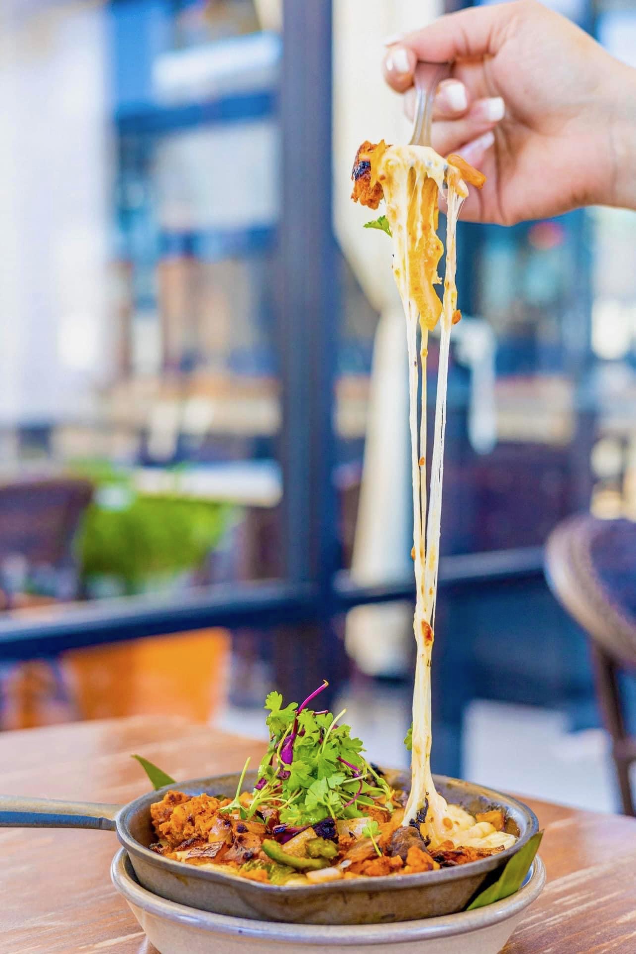 A complex melt of artisanal cheeses, enriched with slow-cooked brisket and fresh spinach.